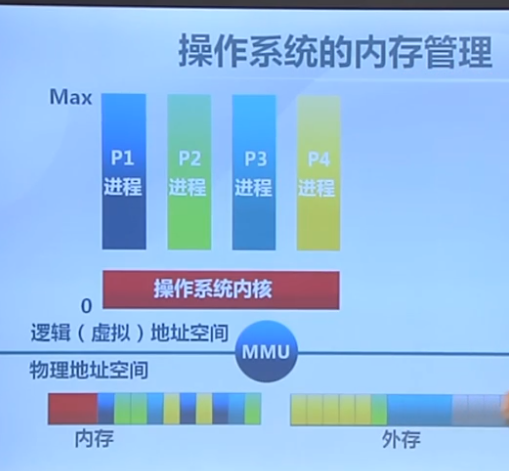 地址空间 : 物理地址空间 硬件支持的地址空间 起始是0 知道 MAXsys 逻辑地址空间 CPU运行时 进程看到的地址 0- MAX prog