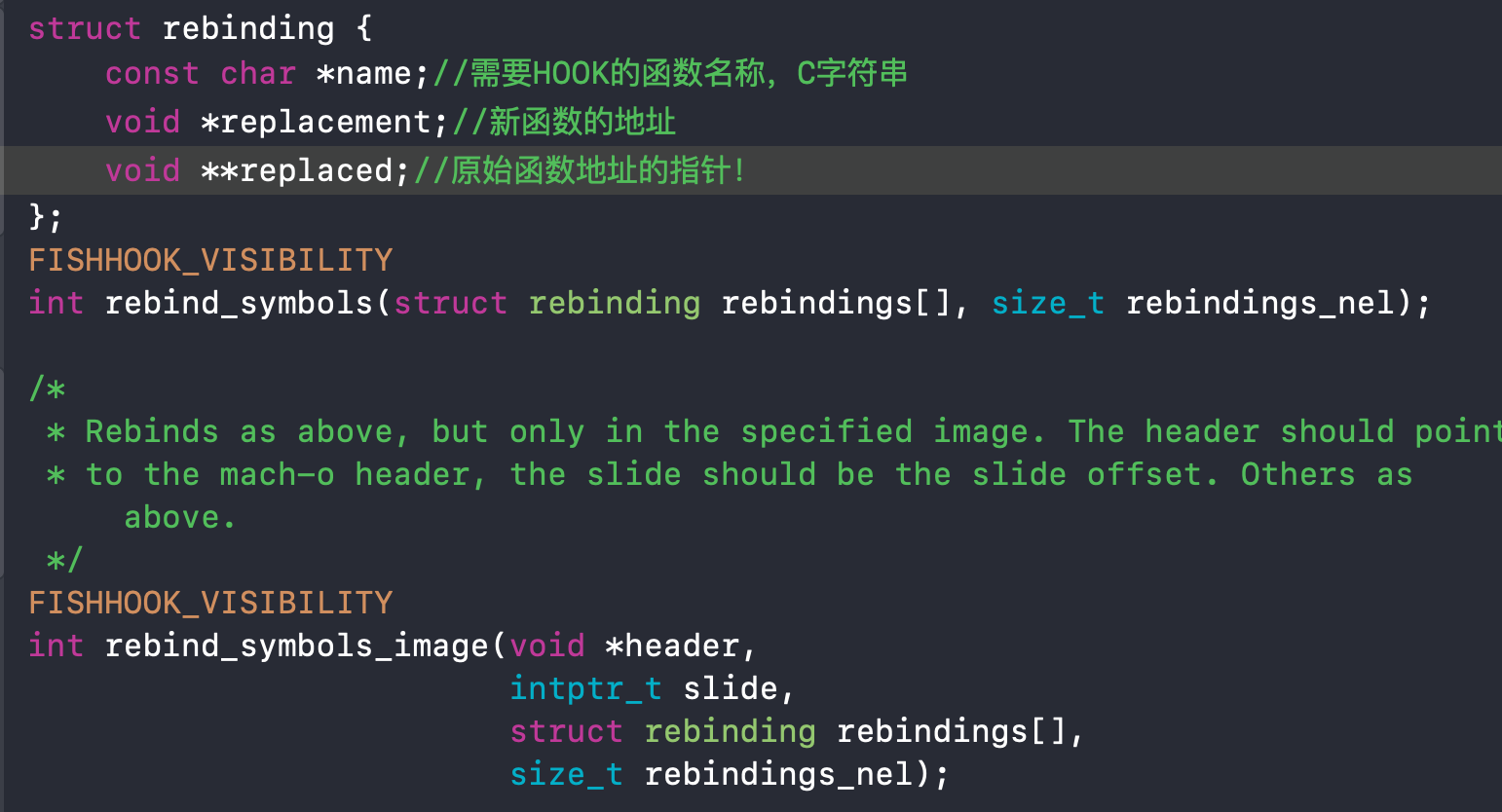 fishhook的主要方法有两个还有一个结构体