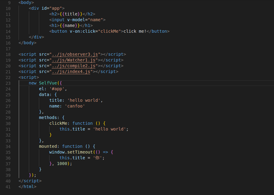 最后我们再次改造一下SelfVue,是它的格式看上去更像vue: