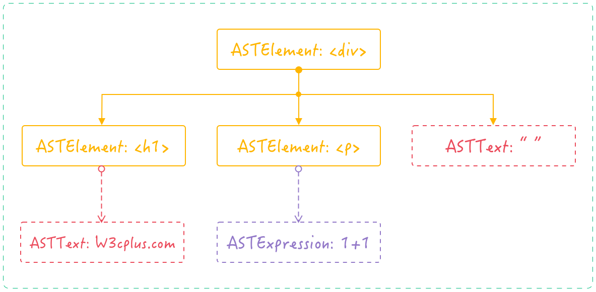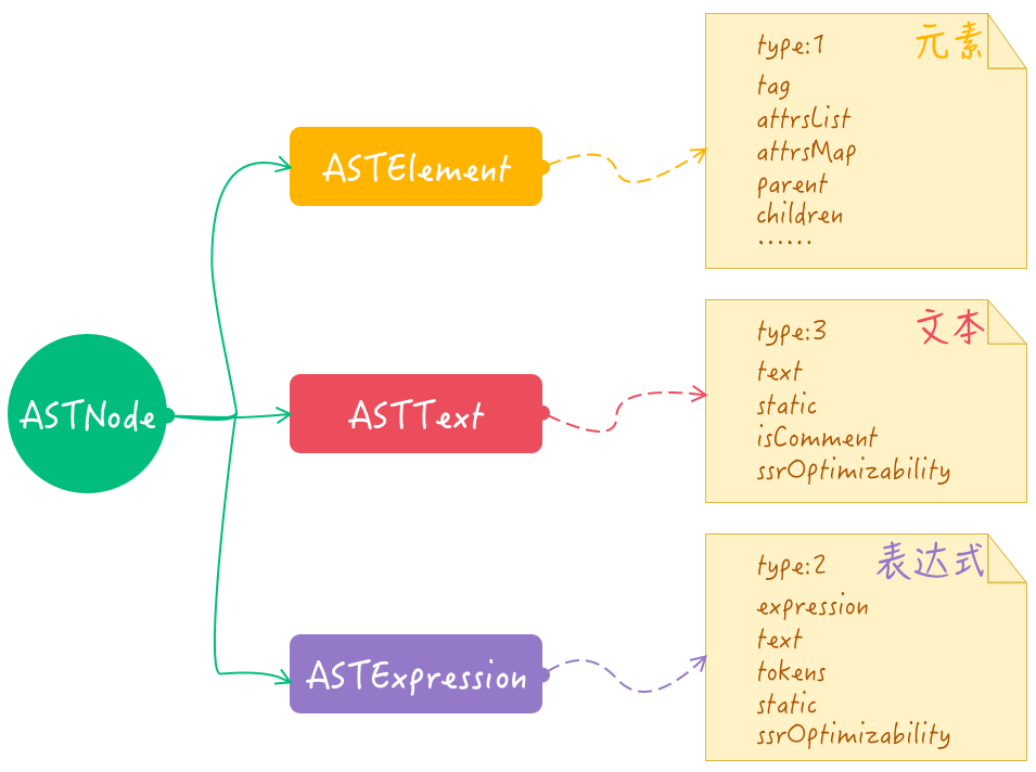 其中AST是解析器中一个非常重要的概念。在Vue中,ASTNode主要分为:ASTElement(元素)、ASTText(文本)和ASTExpression(表达式)。用type属性区分。