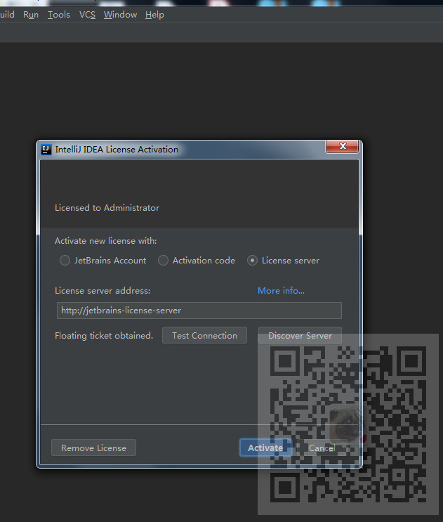 然后先点击激活按钮左下角的 Remove License按钮,然后选择激活方式中的 Activation Code 方式激活,填入如下激活码并激活: