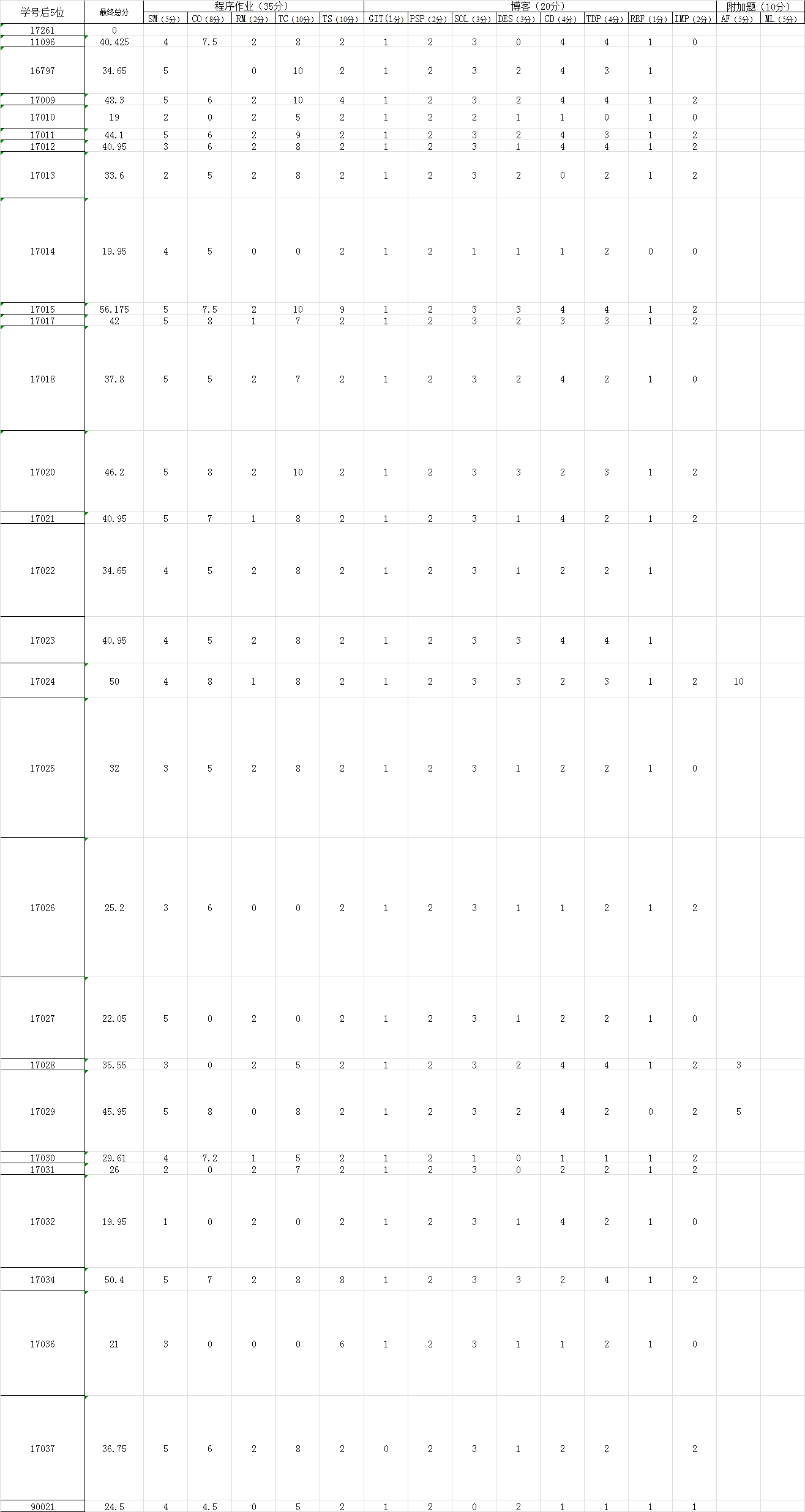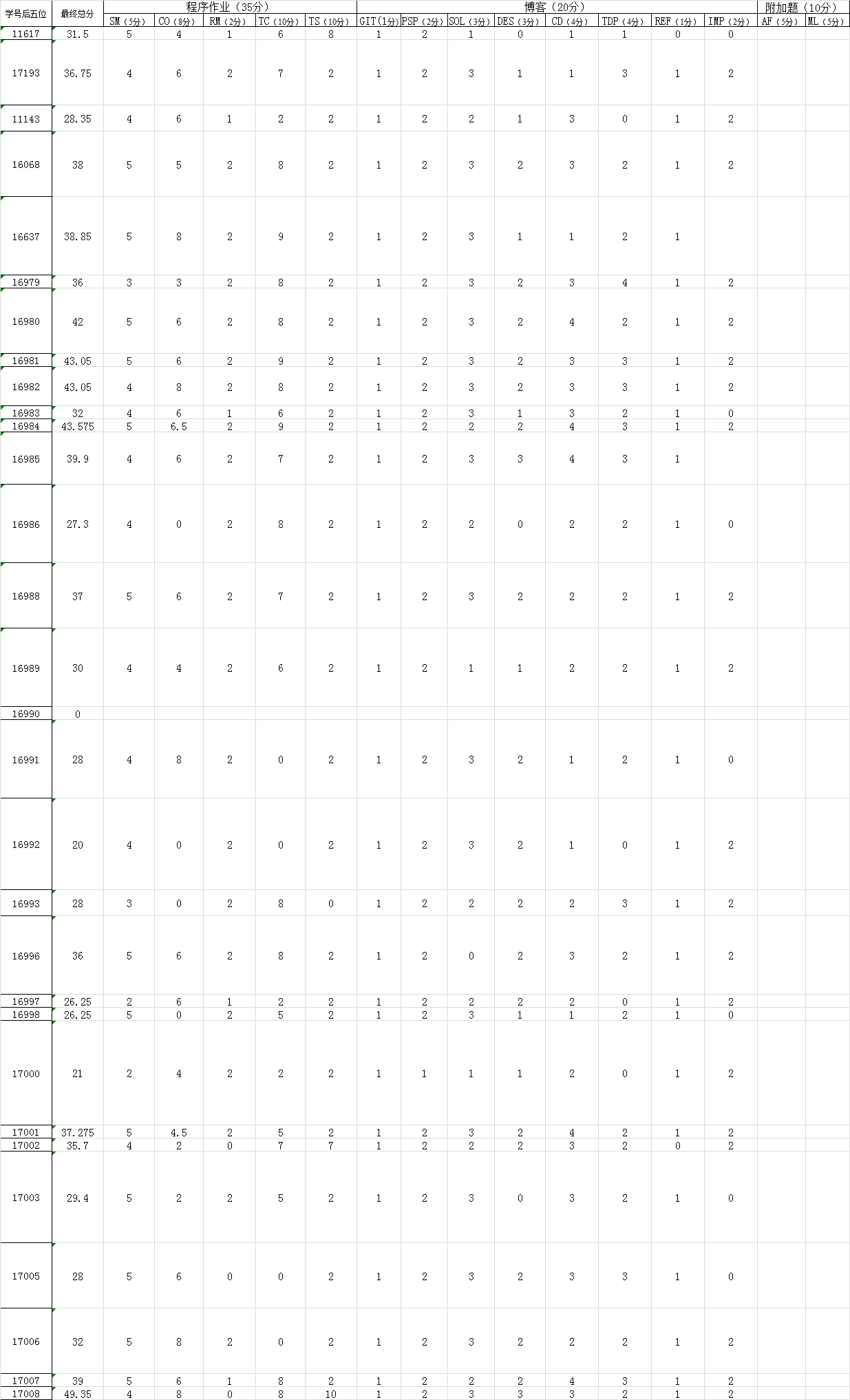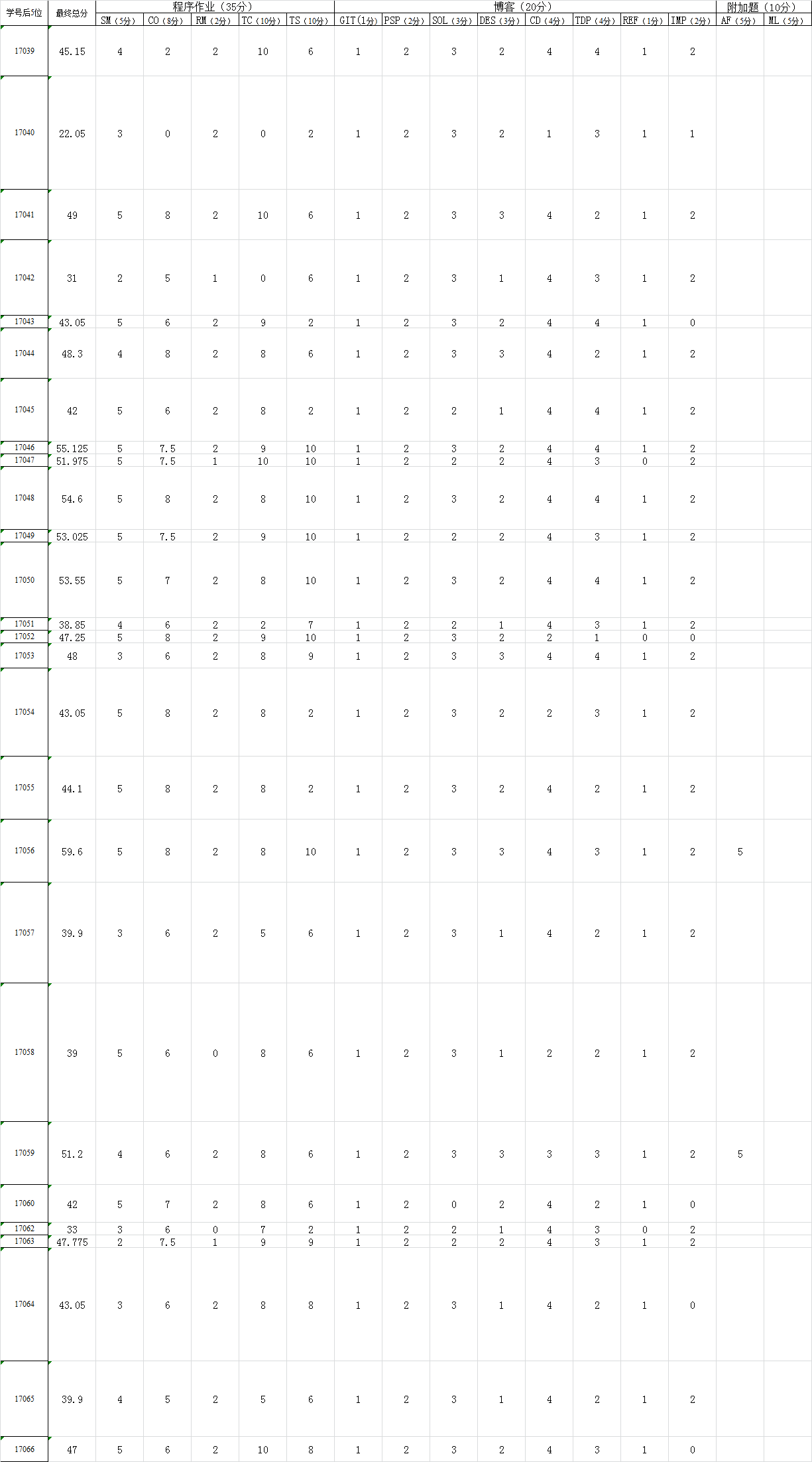 2、成绩表中没有成绩的同学是因为在班级博客和个人博客中没看到提交作业。