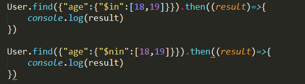 User.find({"age":{"$in":[18,19]}}).then((result)=>{