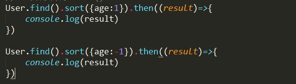 User.find().sort({age:1}).then((result)=>{