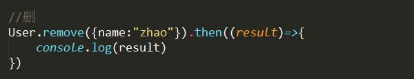 User.remove({name:"zhao"}).then((result)=>{