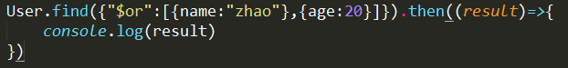 User.find({"$or":[{name:"zhao"},{age:20}]}).then((result)=>{