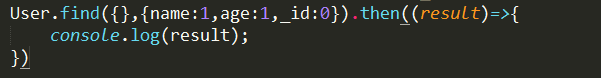 User.find({},{name:1,age:1,_id:0}).then((result)=>{