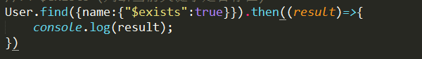 User.find({name:{"$exists":true}}).then((result)=>{