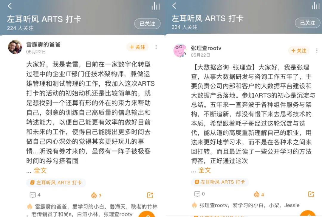 也正因如此,耗子叔在他的专栏读者中,发起了 ARTS 打卡活动。本质上是一种刻意练习以提升自己的方法,非常有效。