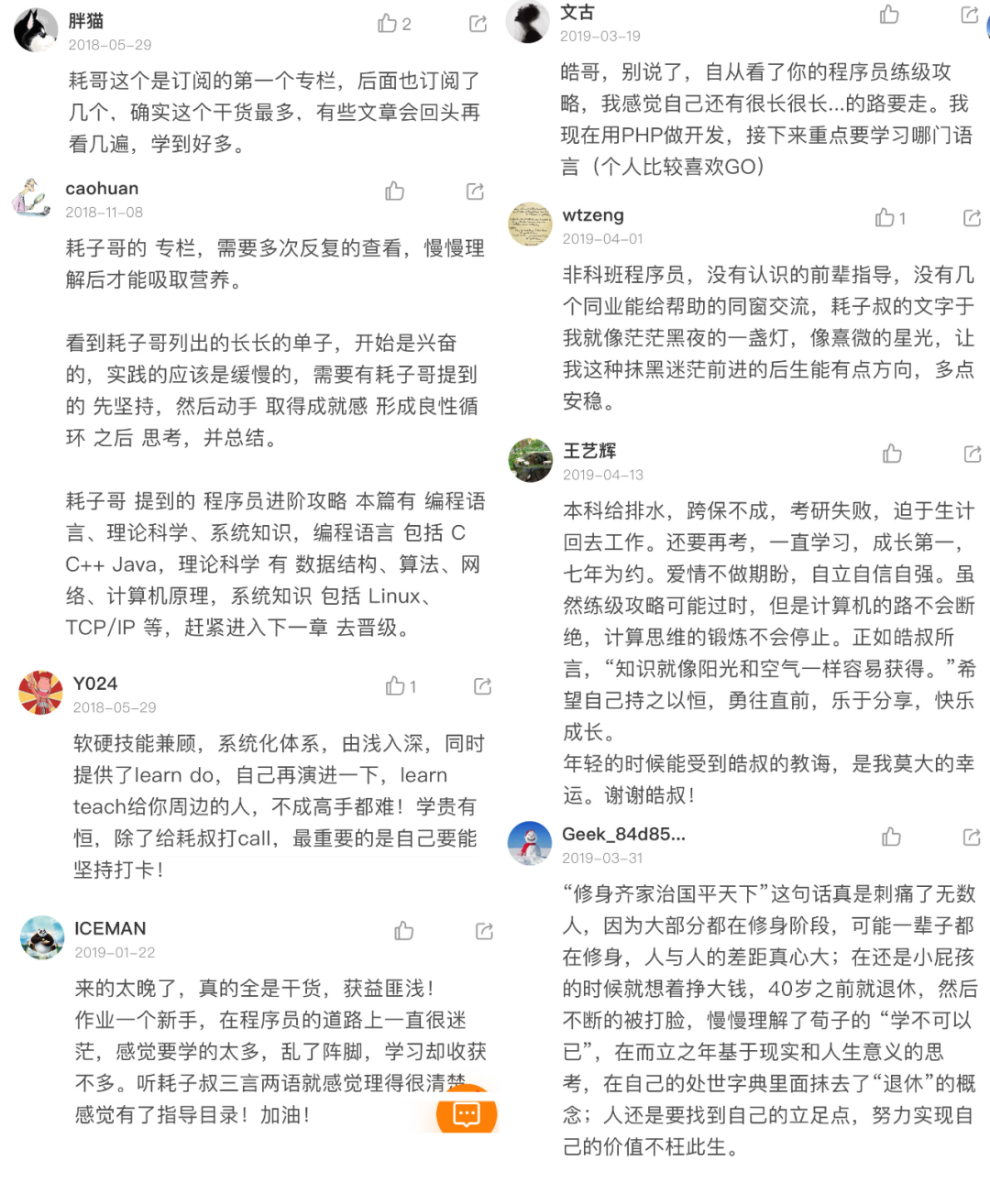 耗子叔这个专栏,好评如潮,可以说,是闭着眼买,也不会吃亏的。小灰随手截了一些评论: