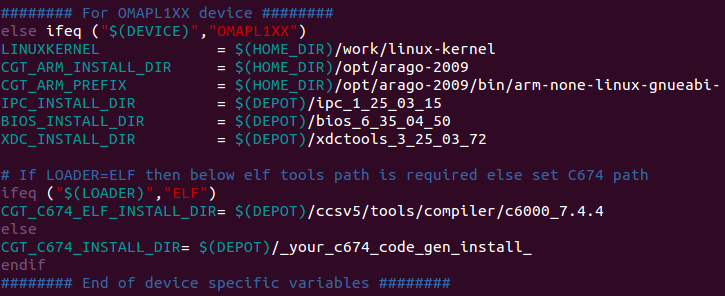cd /opt/ti/syslink_2_21_01_05 进入该路径下,打开配置文件: sudo vim products.mak 要改的内容在下面