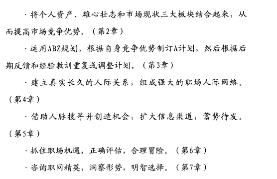 本书的内容不算多,堪称精辟,有些东西甚至可以作为指导思想。括号内为书列君书评。