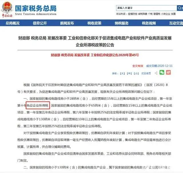 本月,财政部、税务总局、发改委、工信部联合发布关于促进集成电路产业和软件产业高质量发展企业所得税政策的公告,国家鼓励的集成电路线宽小于28纳米(含)且经营期在15年以上的集成电路生产企业或项目,第一年至第十年免征企业所得税,公告自2020年1月1日起执行。