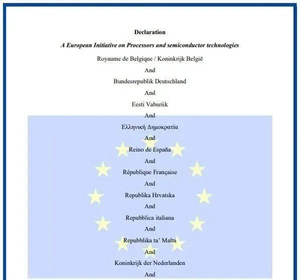声明表示,签署成员国同意共同努力,以加强欧洲的电子和嵌入式系统价值链。这将包括两个方面:一是强化处理器和半导体生态系统,二是在整个供应链中扩大工业影响力——以此来应对关键技术、安全和社会方面的挑战。