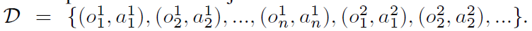 通过模仿专家的行为来学习最优策略。具体来说,模仿学习需要一组决策轨迹,{T1, T2,..由专家生成,其中每一个判定轨迹由一系列“观测-动作”对组成。e, Ti = oi, ai....。这样的轨迹可以作为示范,教智能体如何在观察中表现。我们可以提取所有的专家意见,