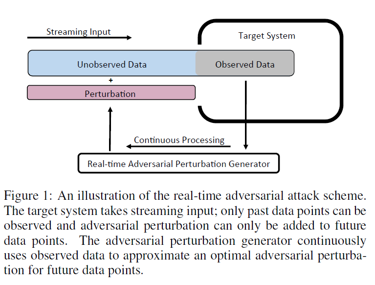 以前的对抗攻击关注于静态输入,这些方法对流输入的目标模型并不适用。攻击者只能通过观察过去样本点在剩余样本点中添加扰动。