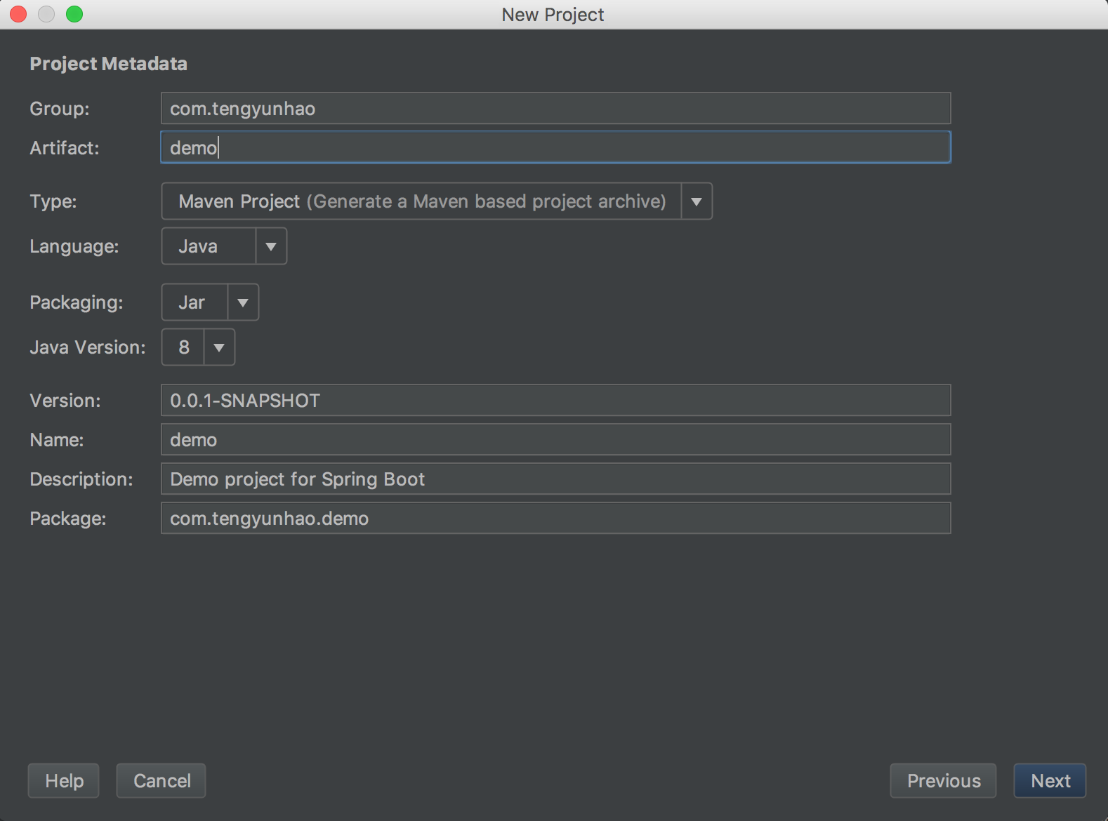 点击 Next 后,填写项目名称,点击 finish 创建。在项目中 src/main/java 目录下可以看到一个 artifactId+Application 命名规则的类,这个类是整个项目的入口类,运行它就可以启动我们的 Web 项目,如图: