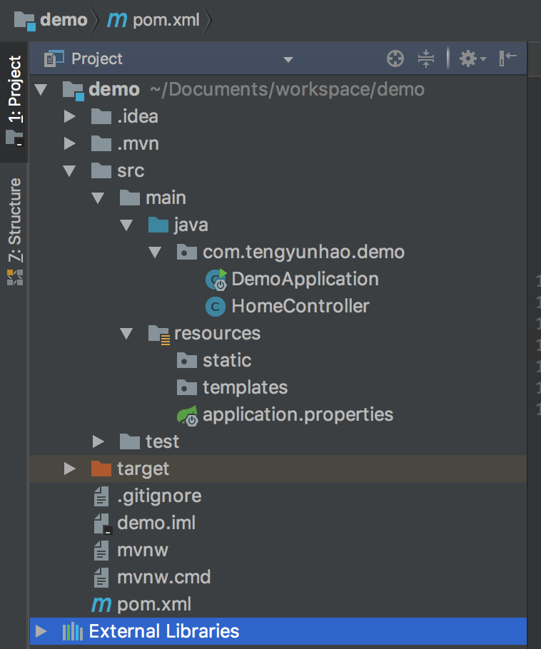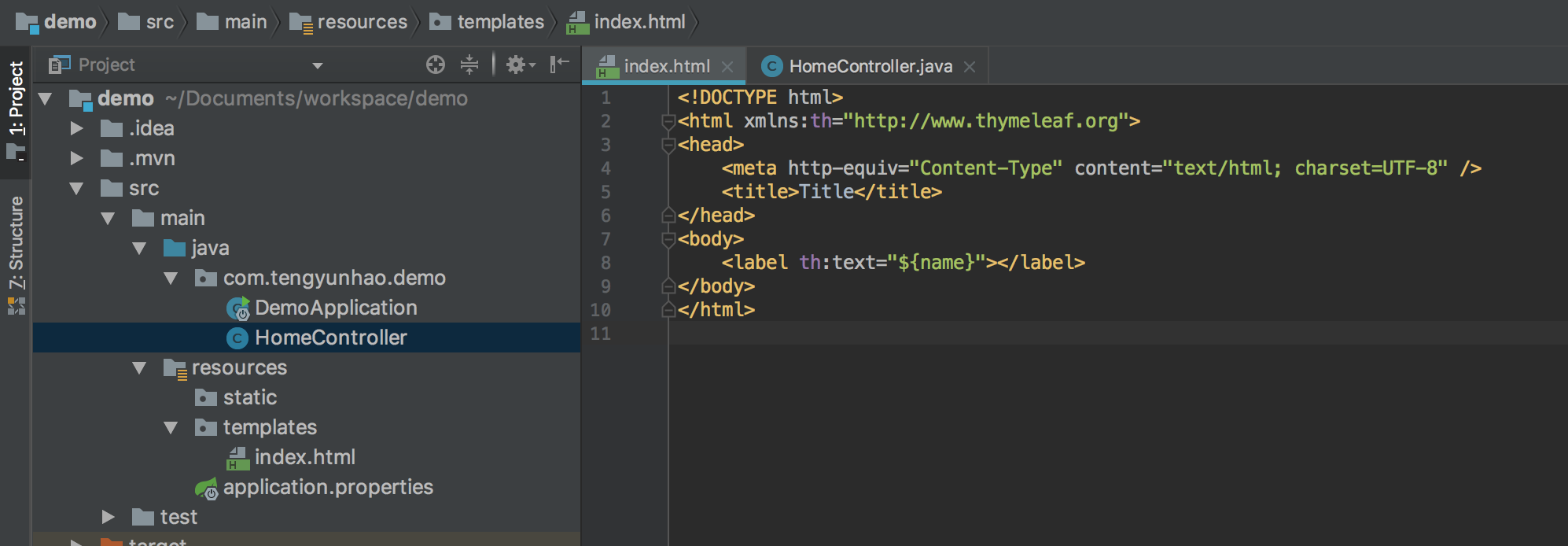 Spring Boot 推荐我们使用 thymeleaf 模版完全替代 JSP,好处是可以使用后缀为 html 的页面,浏览器能直接解析它,静态运行。它使用 html 标签,只是在标签里增加额外的属性,来达到展示数据的效果。当我们创建好项目后可以看到,在 resource 目录下已经创建好了两个目录,其中 static 用来存放一些静态资源,而 templates 用来存放模版页面,如下图: