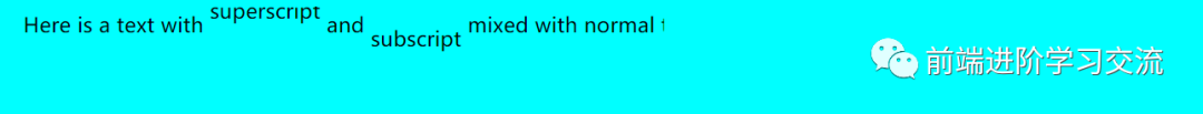 <svg width="500" height="100"><text x="10" y="20">Here is a text with<tspan style="baseline-shift: super;">superscript</tspan>and <tspan style="baseline-shift: sub;">subscript</tspan> mixed with normaltext.</text></svg>