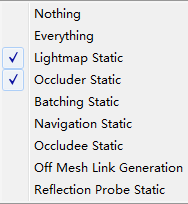 Occludee Static: 进行遮挡剔除操作的对象为透明或半透明,以及那些不太可能遮挡其他物体的小物体。即能被其他物体遮挡而本身却不会遮挡到其他物体,这将有效减少计算量。