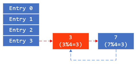 不同的key经过hash运算,结果落到同一个table的元素中,元素内部是链表结构,新增的数据会直接插入到链表的结尾。当查询的时候,首先通过hash找到元素在hashmap中的table位置,然后遍历链表找到元素,遍历的时间复杂度为O(n).
