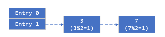 初始状态hashmap 的初始大小为 2^n (n=1), hashmap的size是2, 插入两个元素3和7