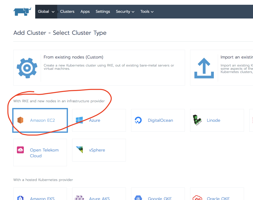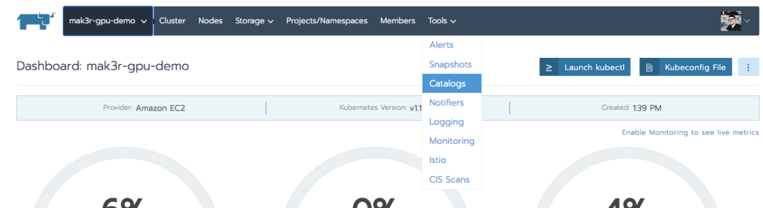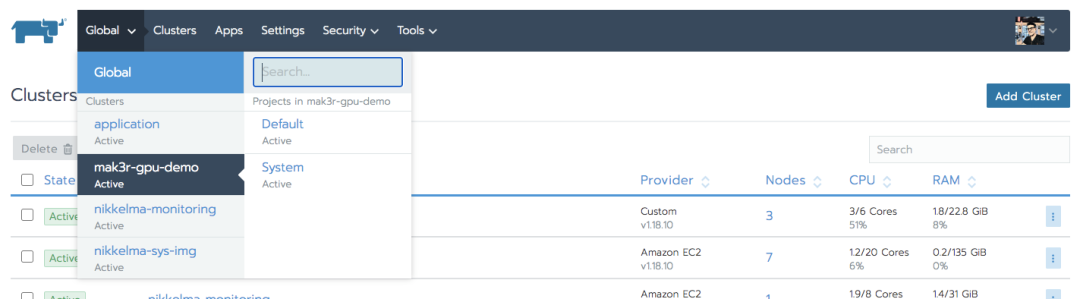 Rancher安装之后,我们首先将构建和配置一个Kubernetes集群(你可以使用任何带有NVIDIA GPU的集群)。