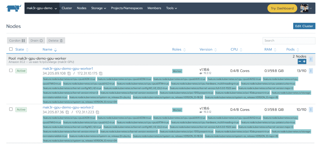 我们是通过节点驱动来实现的—— 一组预配置的基础设施模板,其中一些模板有GPU资源。