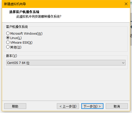 选择操作系统为linux,在版本菜单选择centos7 64位,点击下一步;
