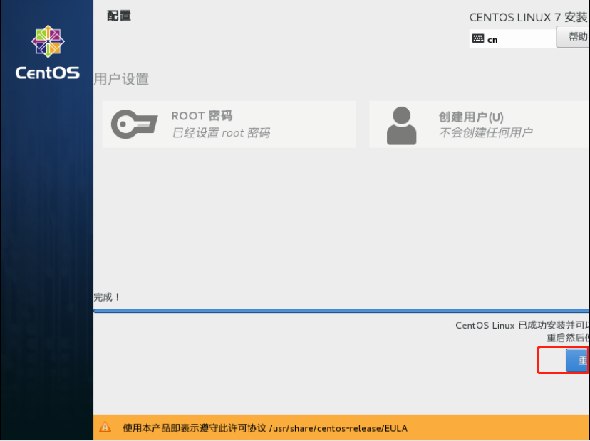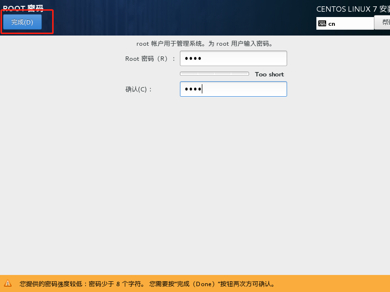 设置root密码,博主设置为root,用户和密码相同,容易记住。密码设置完成后点击完成;