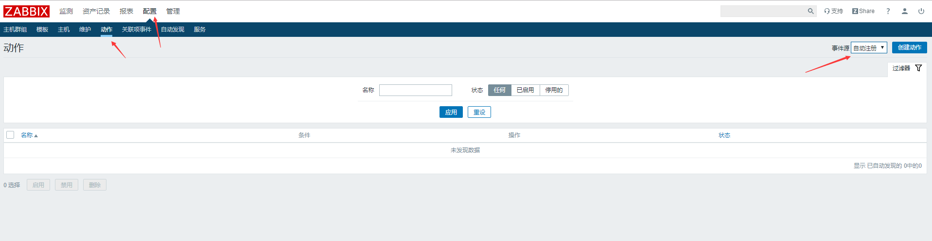 进入:配置 -> 动作 -> 右上角选择自动注册 -> 创建动作