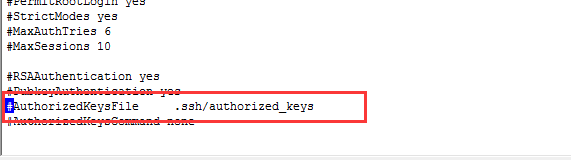 首先检查Server端隐藏目录“ssh”目录下是否存在一个名为“authorized_keys”的文件;若不存在,使用命令:touch authorized_keys 创建一个空文件