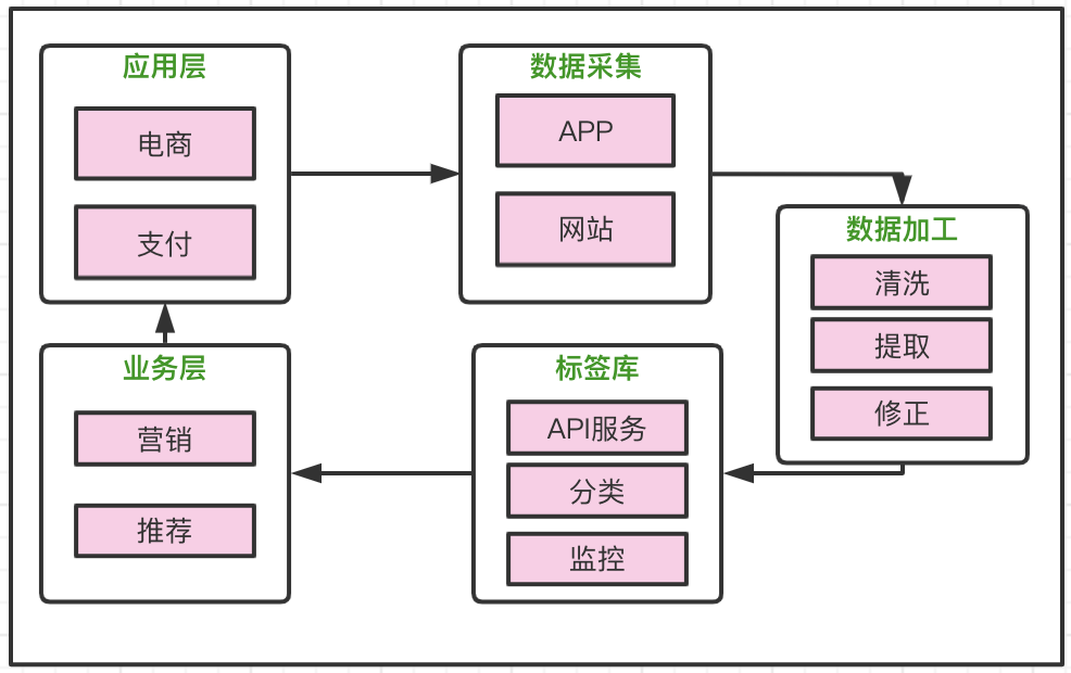 通过不同业务渠道埋点,捕捉用户的行为数据,基于这些数据分析,形成结果描述的标签,例如:分析用户「网购平台」,得到的结果拼多多,淘宝,京东,天猫等。这些都是需要通过行为数据来判断的标签。