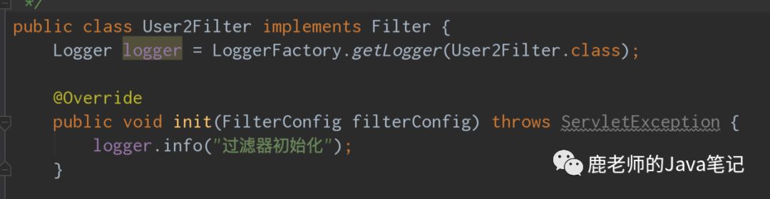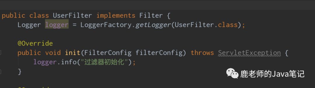 Logger logger = LoggerFactory.getLogger(UserFilter.class);