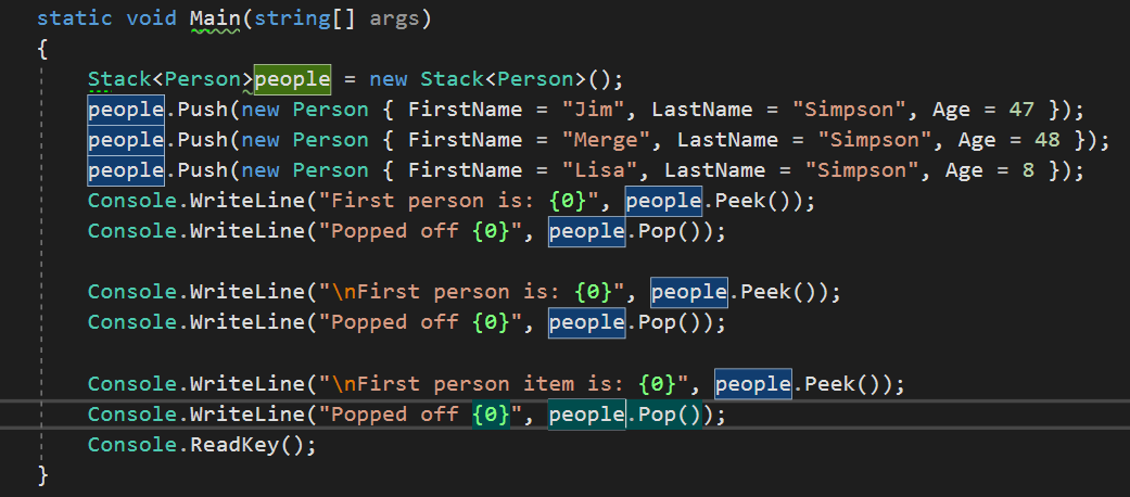 4)stack<T>类以后进先出的方式维护数据的集合,包含pop()和push(),从栈内压入或移除数据