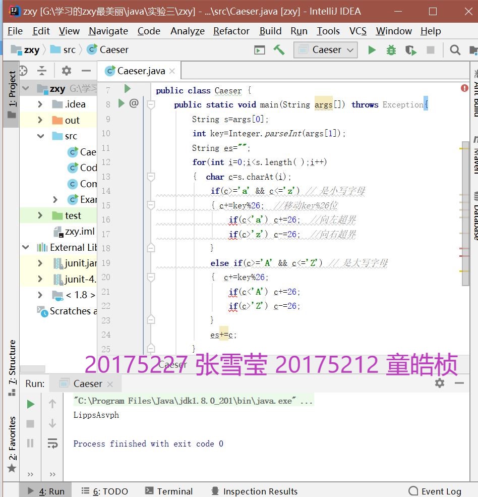 - 我与结对伙伴共同编写凯撒密码加解密算法代码如下: