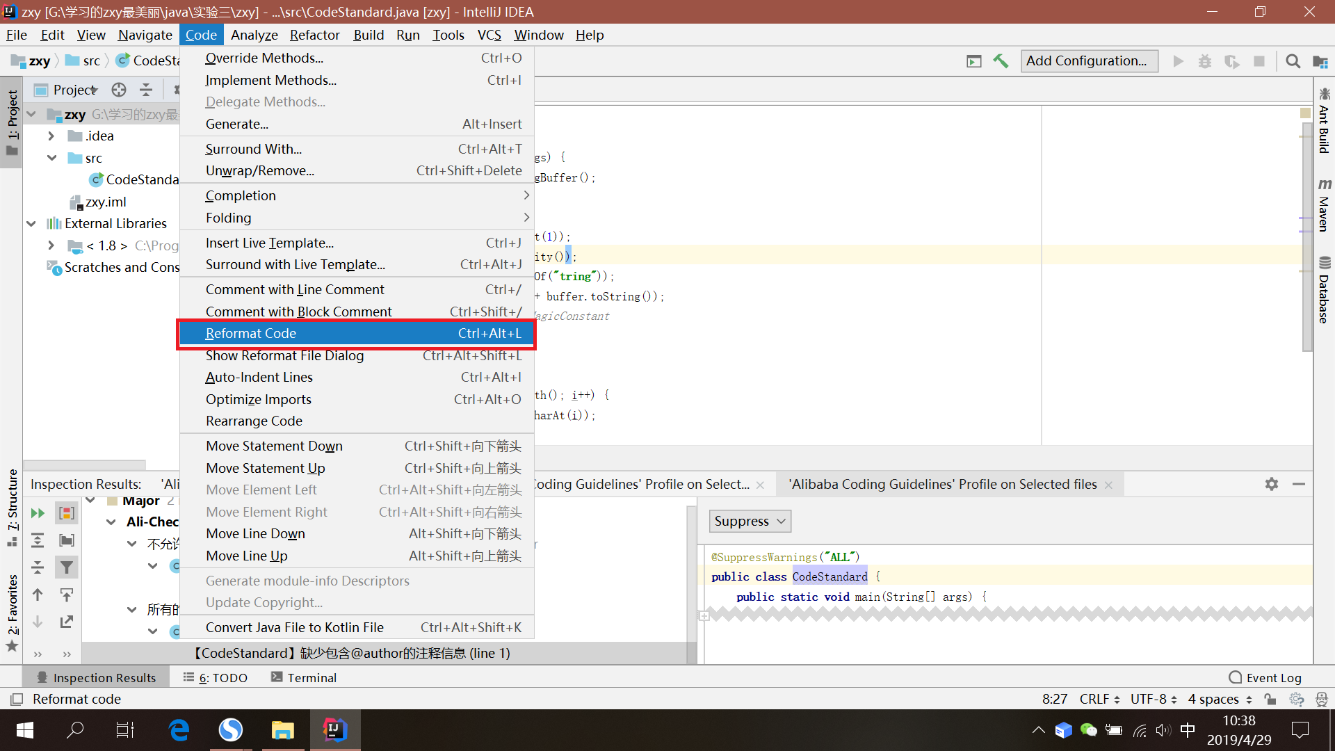 - 参考 http://www.cnblogs.com/rocedu/p/6371315.html#SECCODESTANDARD 安装alibaba 插件,解决代码中的规范问题。