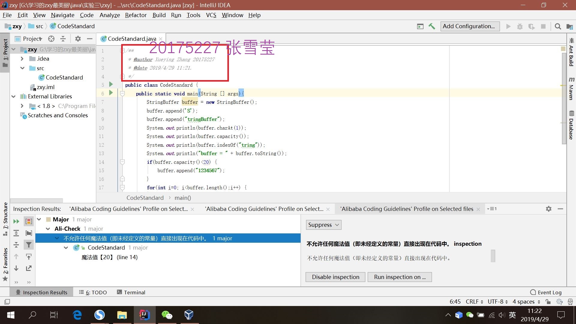 - 课程:Java程序设计 班级:1752班 姓名:张雪莹 学号:20175227