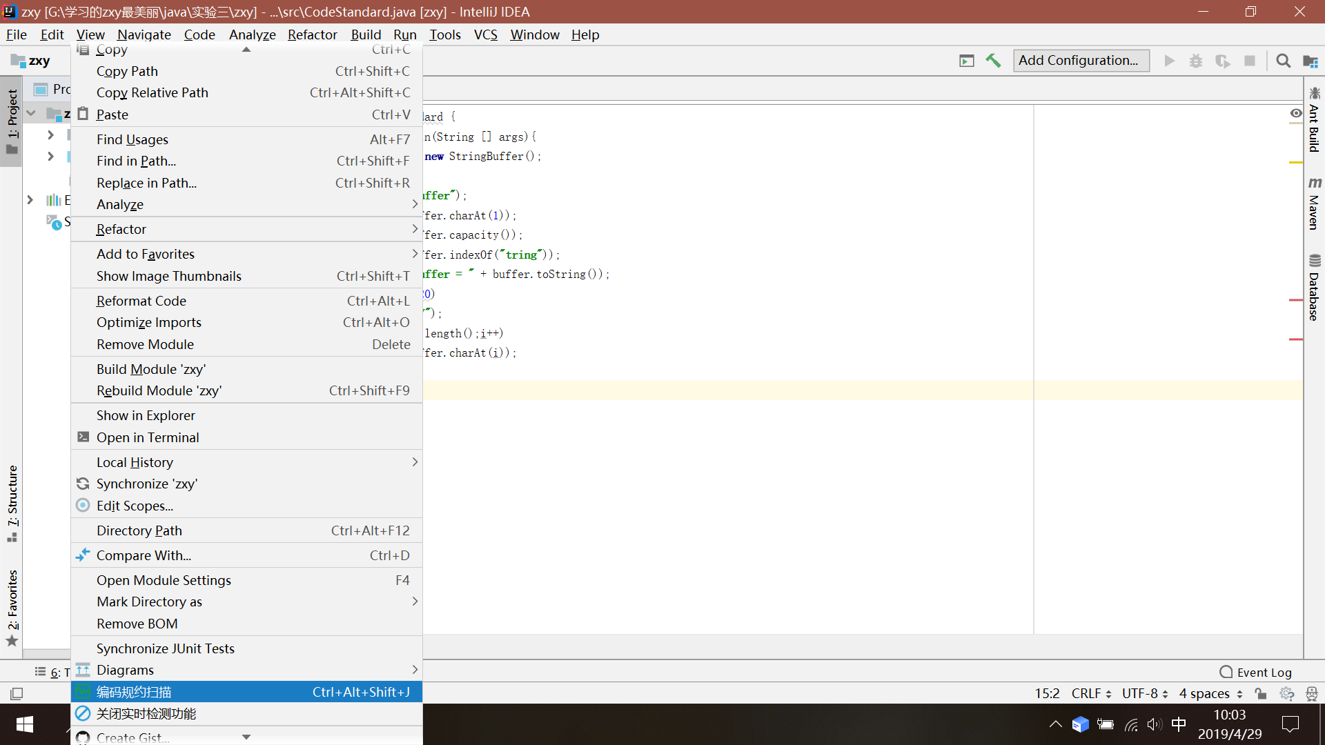 - 在项目名称上单击右键,在弹出菜单上选择`编码规约扫描`: