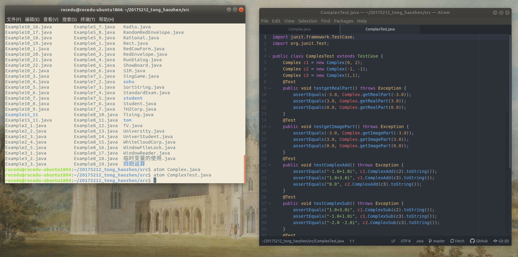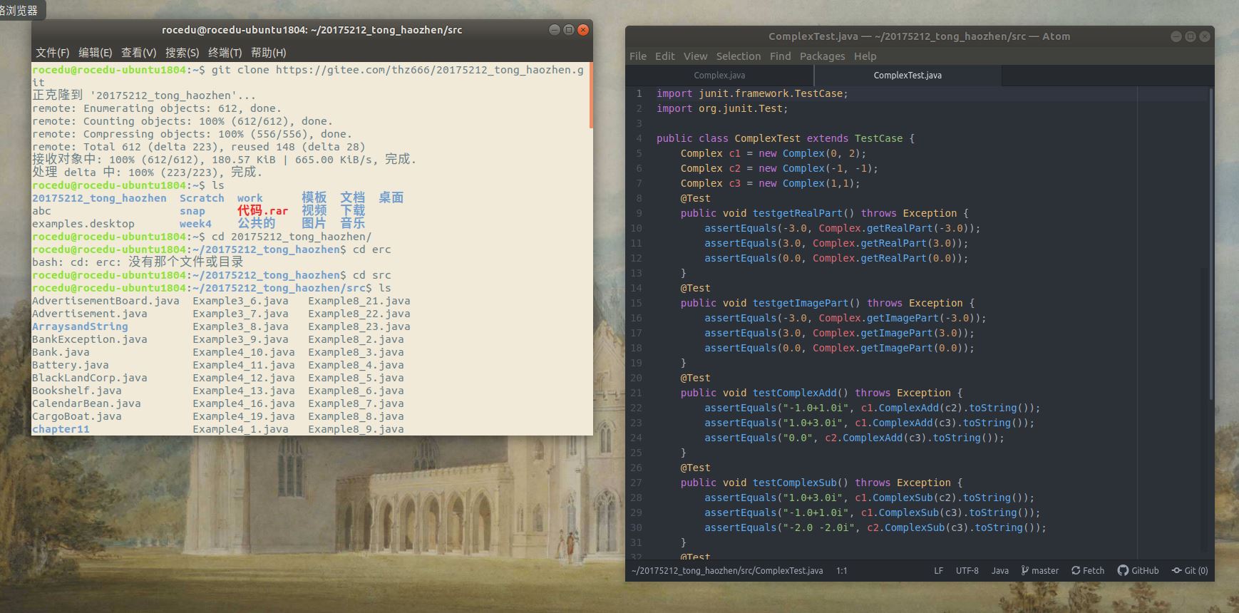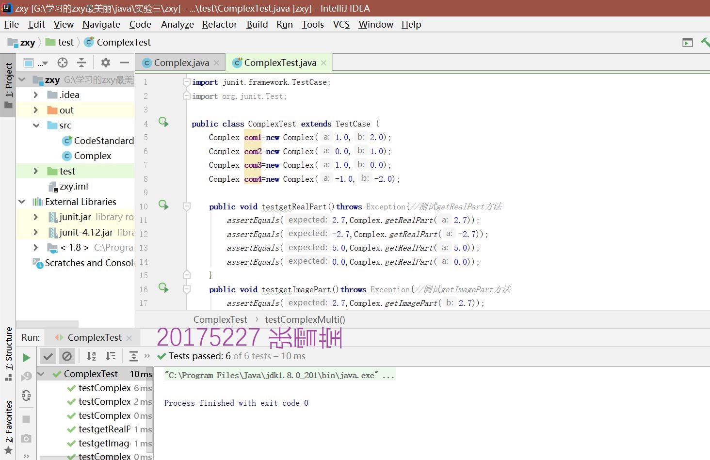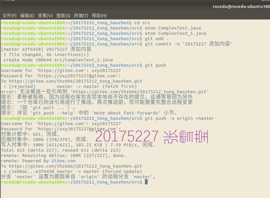 - 在码云上把自己的学习搭档加入自己的项目中,确认搭档的项目加入自己后,下载搭档实验二的Complex代码,加入不少于三个JUnit单元测试用例,测试成功后git add .; git commit -m "自己学号 添加内容";git push;