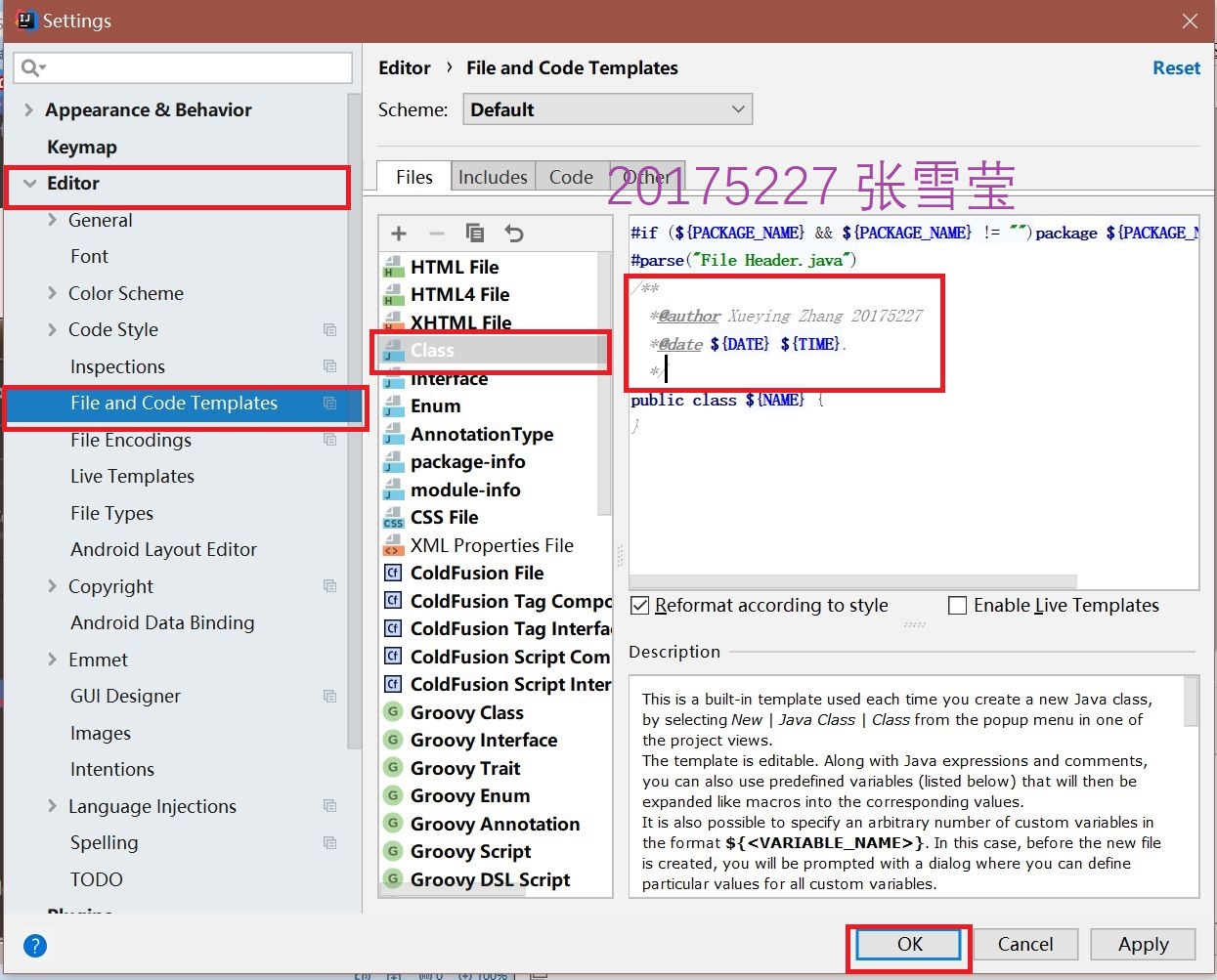 Settings->Editor->File and Code Templates->Class在程序框中输入: