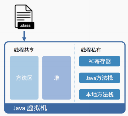 从虚拟机视角分析:执行Java代码首先需要将它编译而成的class文件加载到虚拟机中,加载后的Java类会被存放在方法区(Method Area)中,实际运行中,虚拟机会执行方法区内的代码。Java虚拟机会将内存划分出堆和栈来存储运行时的数据,而且Java虚拟机会将栈细分为面向Java的Java方法栈,面向本地方法(用C++写的native方法)的本地方法栈,以及存放各个线程的执行位置的PC寄存器。