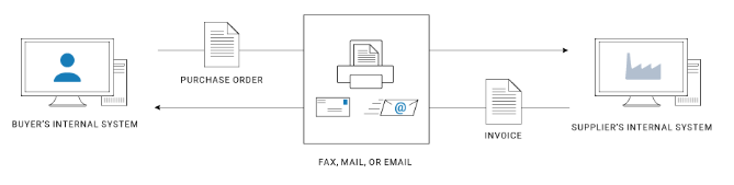 为了更有效地阐述清楚EDI及其含义,让我们来对比一下使用传统的纸质/电子邮件和使用EDI与交易伙伴进行业务往来的实例。