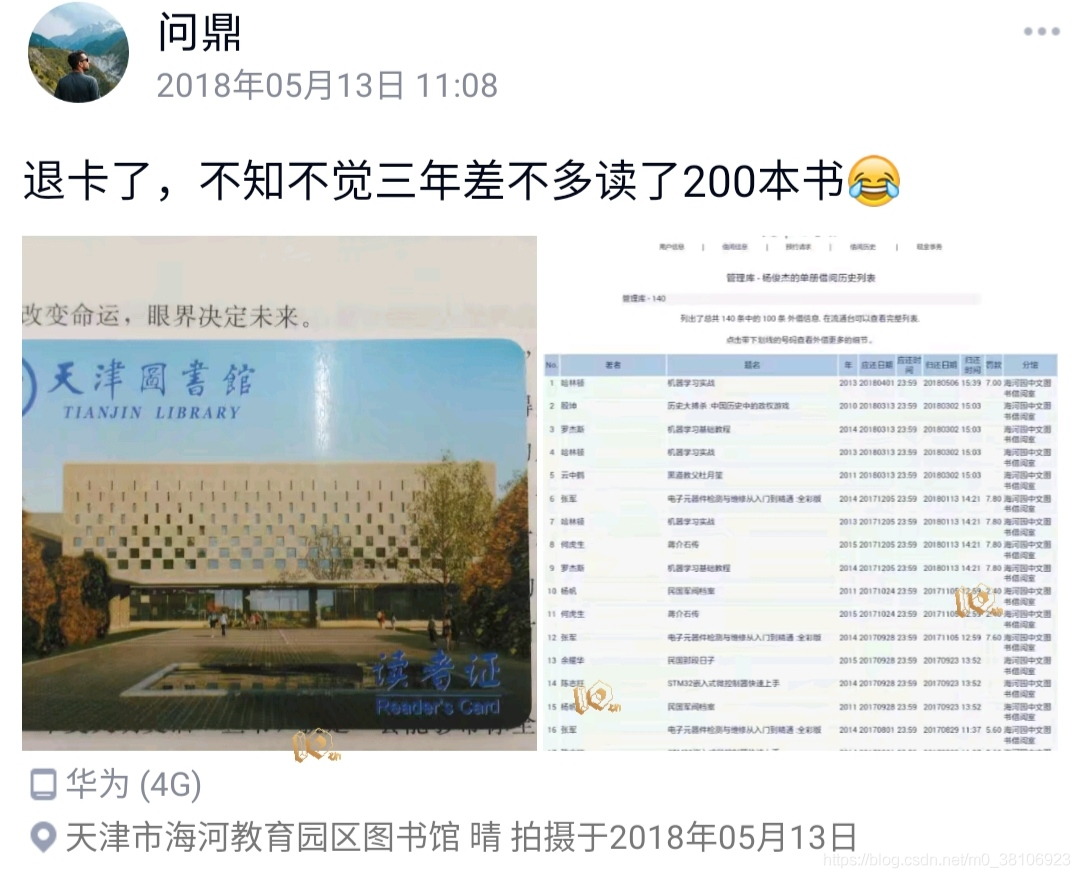 这三年学习、技术成绩一直保持专业第一名,并且坚持阅读人文历史类、技术类等书籍,坚持练字。这个习惯一直保持至今,虽然工作繁忙依然保持非技术类图书一年10~20本的阅读量。
