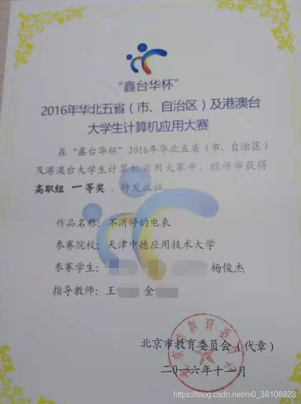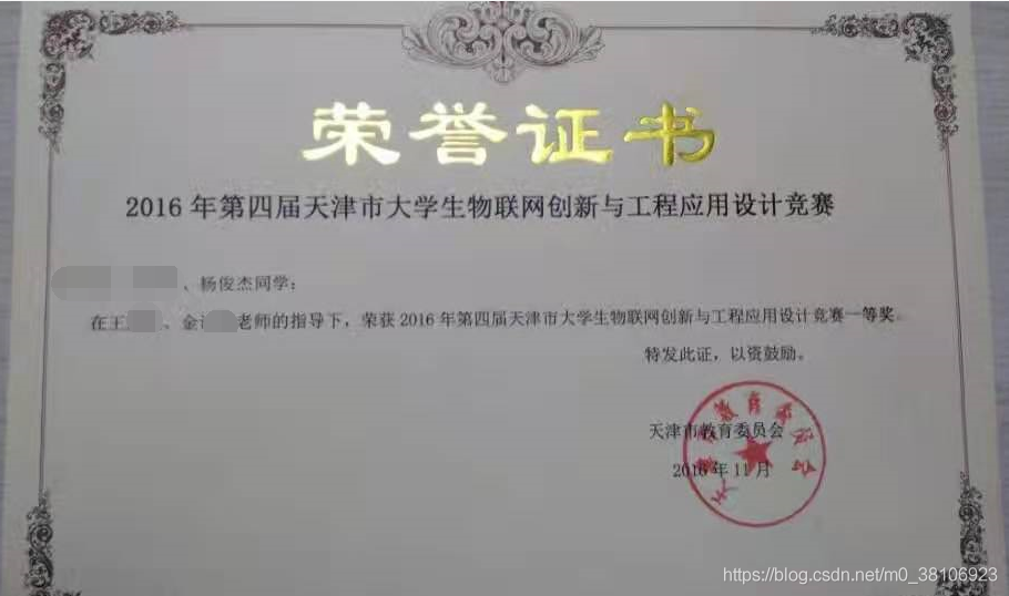 在准备国赛期间,大二上学期期末顺便参加第四届天津市大学生物联网创新与工程应用设计竞赛拿个一等奖。