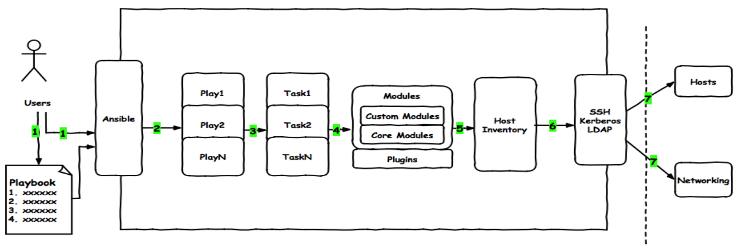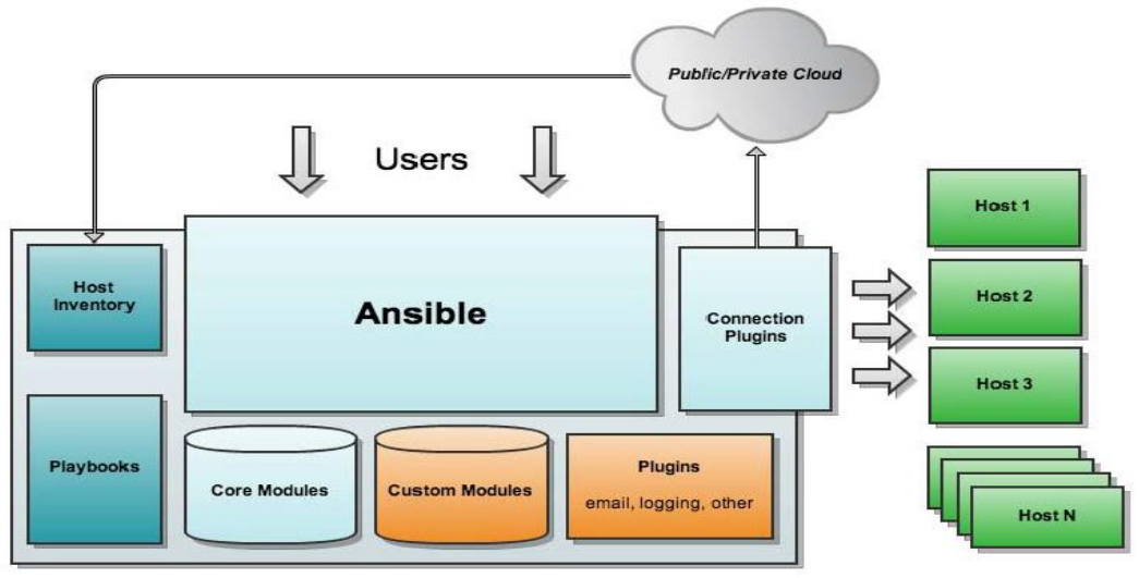 功能:自动化批量部署、配置并启动应用服务;同类的自动化工具还有Saltstack、Puppet、Chef和Fabric等