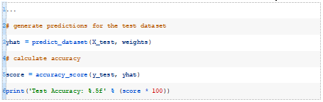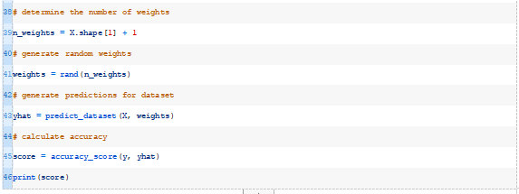 下面的objective()函数通过给定数据集和一组权重来实现这一点,并返回模型的精度。