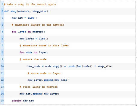 为此,我们将开发一个新功能,创建一个网络副本,并在制作副本时对网络中的每个权重进行变异。