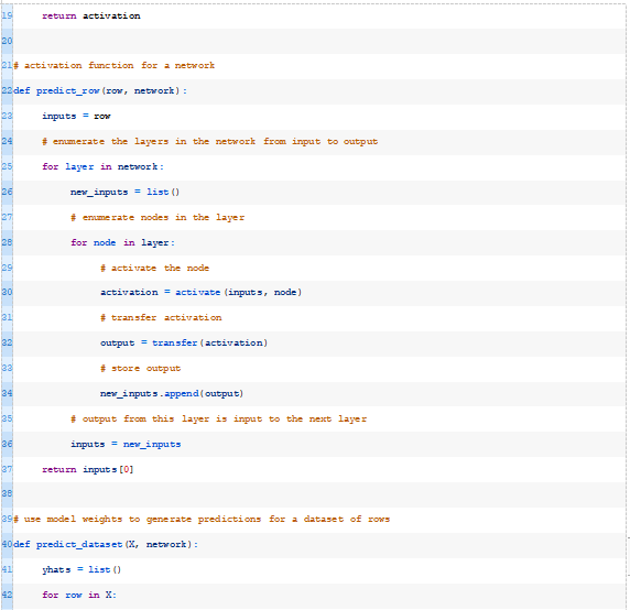 接下来,我们可以开发一个函数,该函数计算来自数据集的给定输入行的模型活性值。