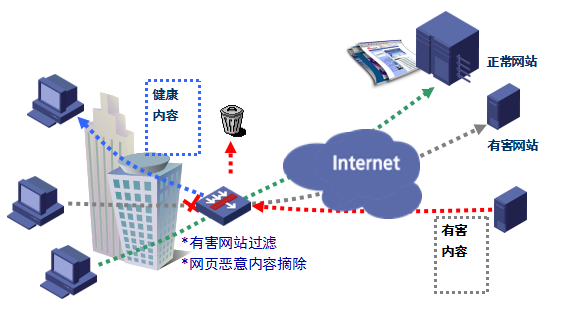 能够过滤掉内部网络对非法网站/色情网站的访问,以及阻止通过邮件发送机密文件所造成的泄密行为。
